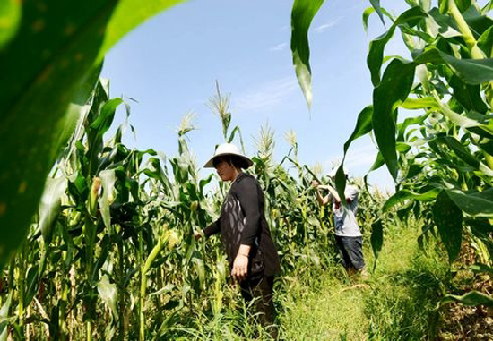 6月24日,观巢镇京桥村供港玉米基地内,工作人员和玉米种植户在对玉米进行田间管理。为调整农业产业结构,该区通过招商引资,采用"公司+农户"的经营方式,建立起玉米种植基地。据了解,该基地的近千亩甜玉米即将丰收,届时将全部销往香港鲜食品市场和罐头加工企业。