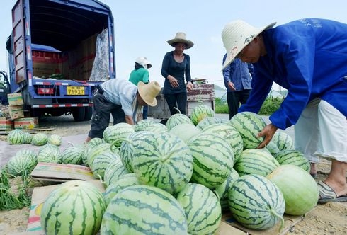 6月19日,来自湖南的客户在欧里镇木村收购麒麟瓜。据悉,我市共有大棚麒麟西瓜2万多亩,远销江苏、浙江、湖南、湖北、上海等省市,西瓜种植成为农民致富的好产业。